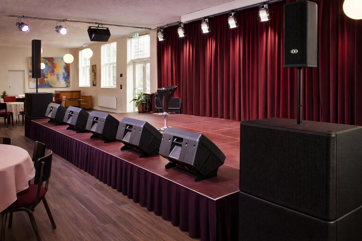 - оборудование для сцены, микрофонов и выступлений;